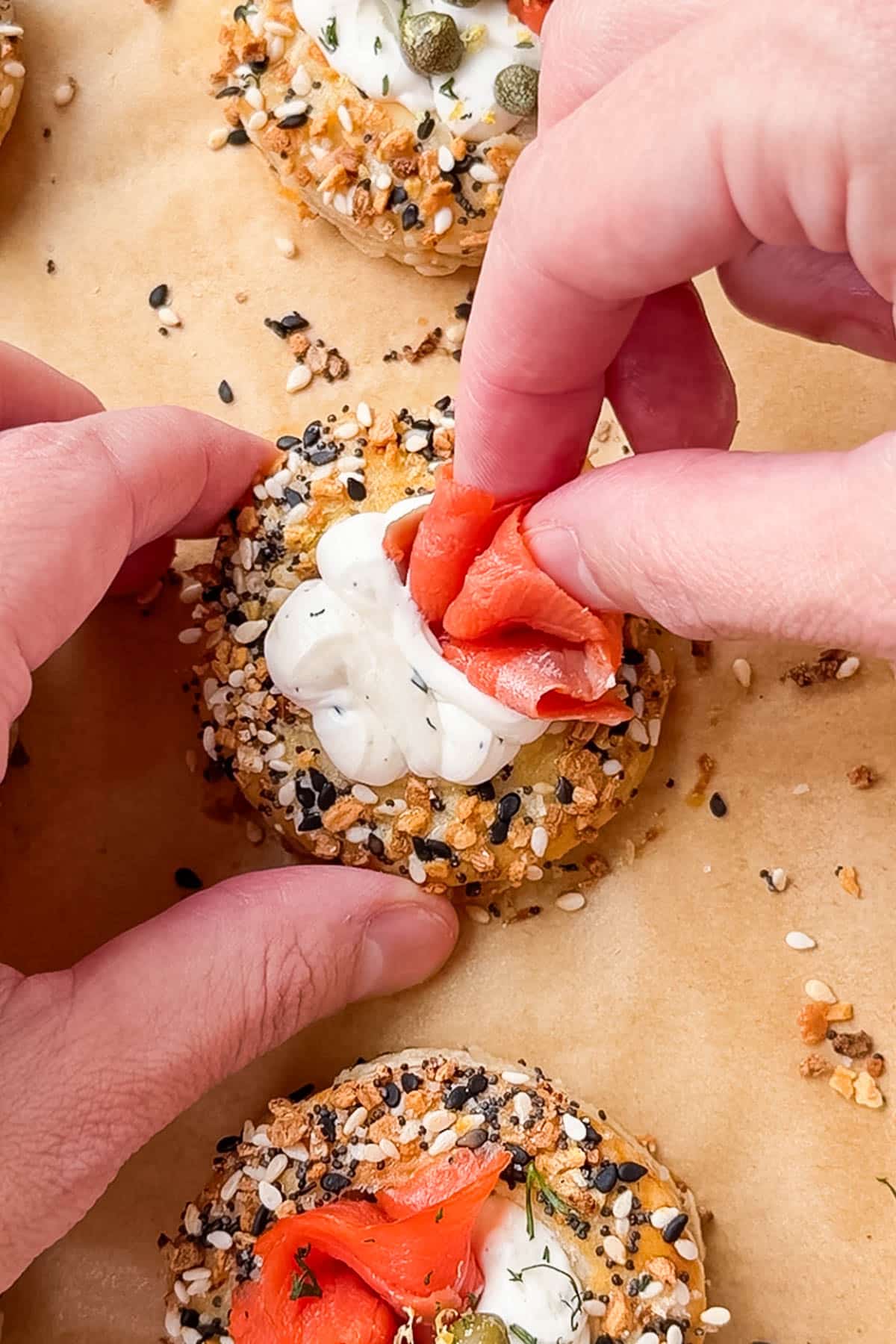 - Prep ahead wisely: You can bake the pastry shells a few hours in advance and store them at room temperature, but wait to fill and assemble until right before serving. (Cream cheese and smoked salmon shouldn’t sit out longer than 2 hours.)
