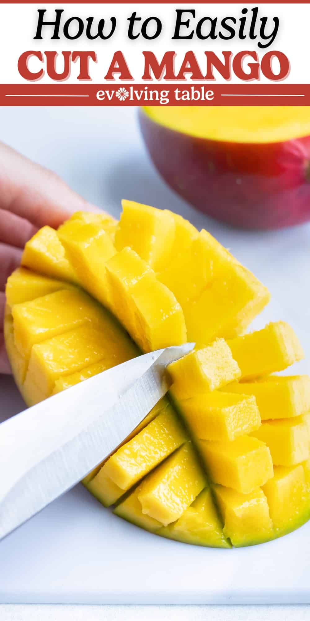 When it comes to cutting a mango, there’s not just one BEST way to do it. In fact, there are 2 very easy ways to cut into this delicious tropical fruit.